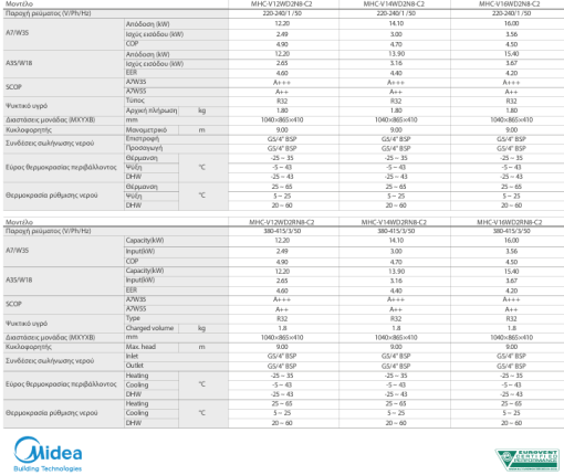 | Ισχύς Αντλίας Θερμότητας (kW) | |